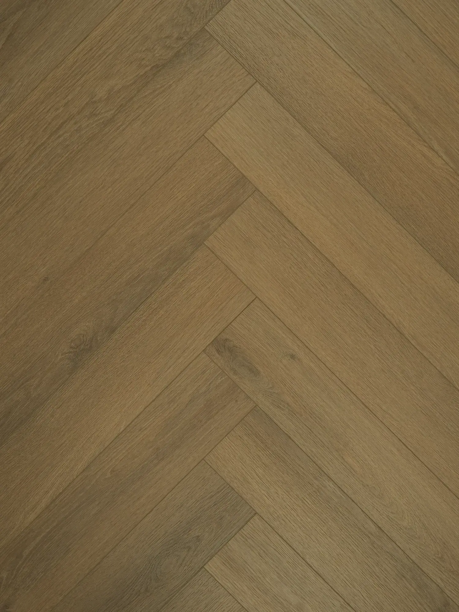 Синхронный рельеф совпадает с рисунком декора — поверхность неотличима от натурального паркета