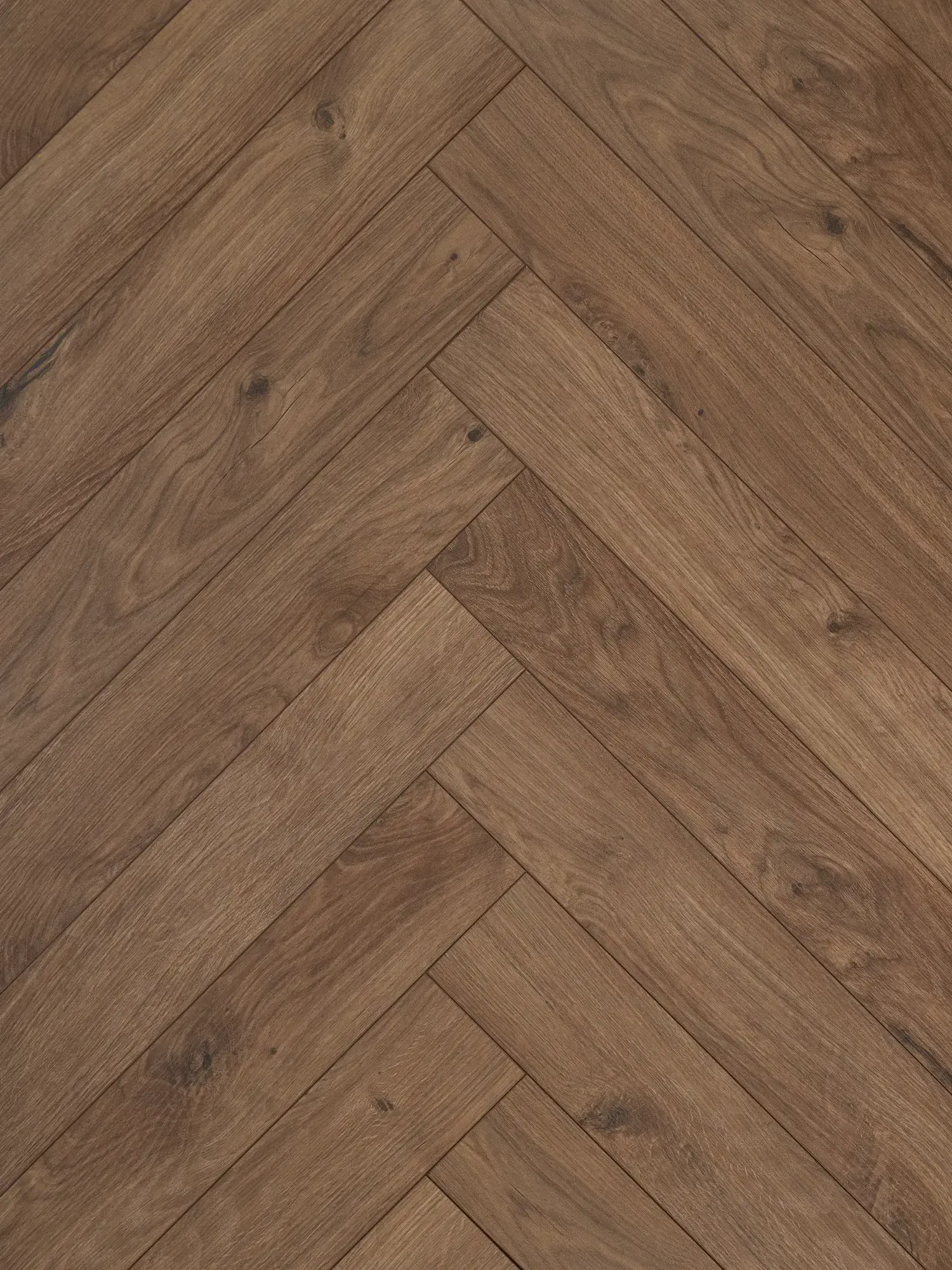 Синхронный рельеф совпадает с рисунком декора — поверхность неотличима от натурального паркета
