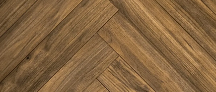 Moa — насыщенный тёмно-коричневый оттенок ореха с благородным шоколадным подтоном, оформленный в классическом формате «английская ёлочка». Глубокий цвет создаёт выразительный акцент, прекрасно вписываясь как в современные контрастные интерьеры (лофт, модерн), так и добавляя глубины и солидности классическим кабинетам или винтажным гостиным.