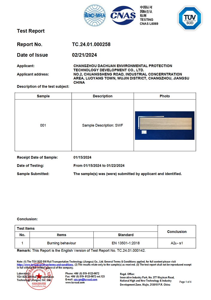 Совместим с тёплым полом до 70°C: теплопроводность 0.294 W/(m·K) обеспечивает эффективную передачу тепла от водяного и электрического обогрева. Класс пожарной безопасности A2fl-s1 (сертификат TÜV SÜD) — материал не поддерживает горение. Нулевая эмиссия формальдегидов и VOC — подтверждено SGS.