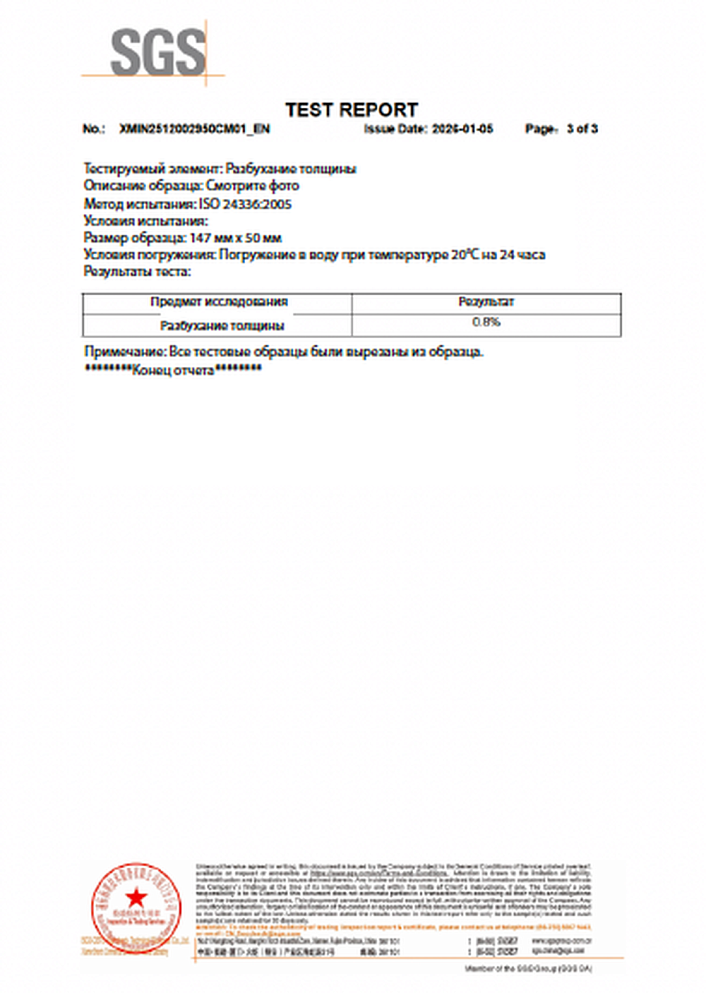 В основе каждой планки — не стандартная HDF-плита, а композит из древесной муки и кальциево-магниевой минеральной основы, скреплённых экологичным гель-составом. Именно это даёт набухание в воде всего 0.8% после 24 часов — против 8–12% у обычного водостойкого ламината. Покрытие подходит для кухонь, прихожих и ванных комнат без каких-либо ограничений. MY STEP - единственный бренд напольных покрытий, участник Сколково